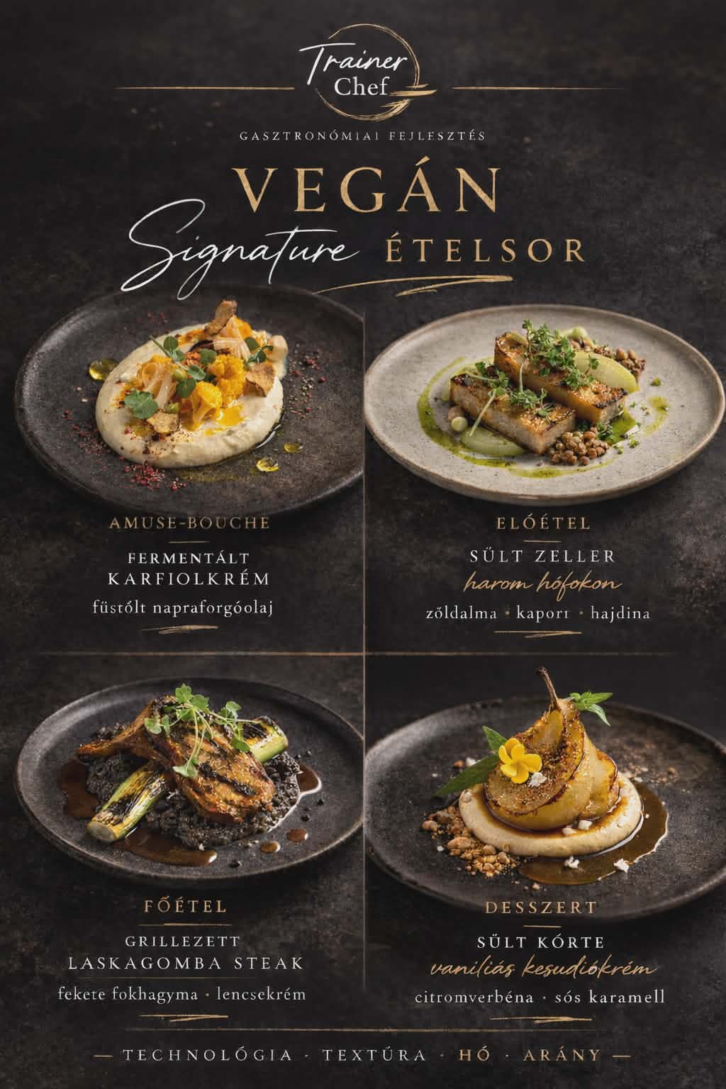 textúra-rétegek (krémes–ropogós–szaftos),